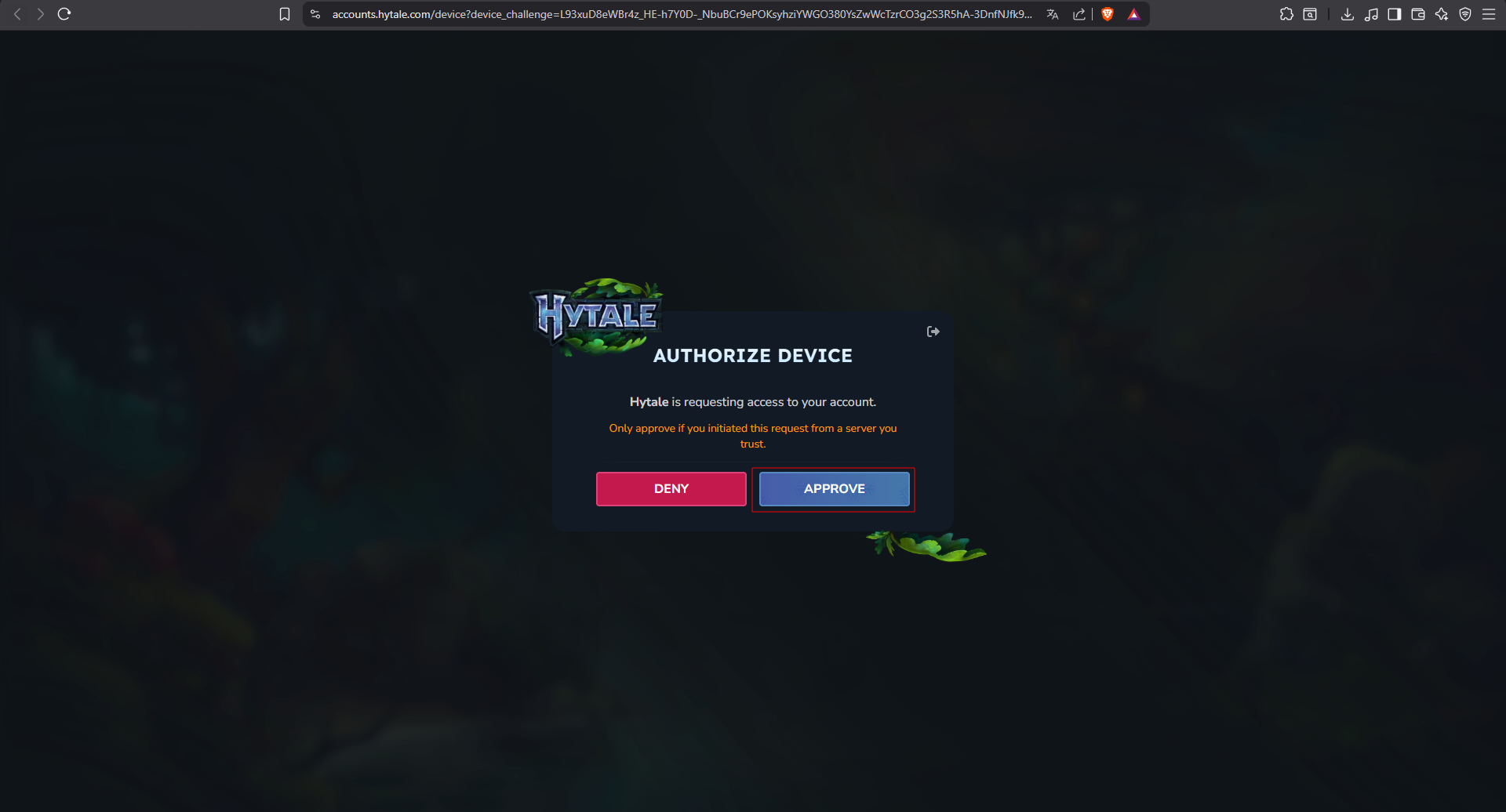 - Ingresa con tu cuenta de Hytale y autoriza la autentificación.