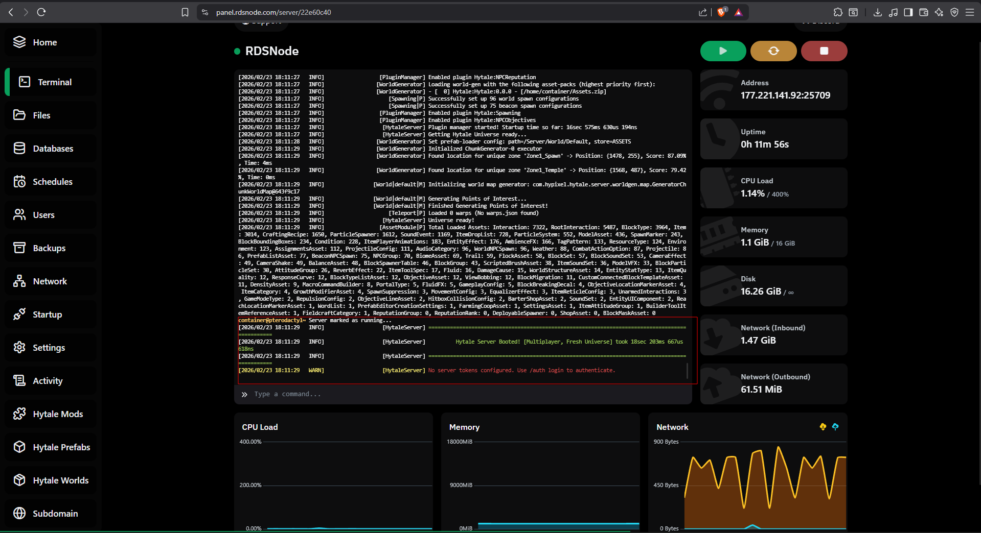 Si inicias el servidor por primera te va a pedir una autentificación, el mensaje es algo como esto: