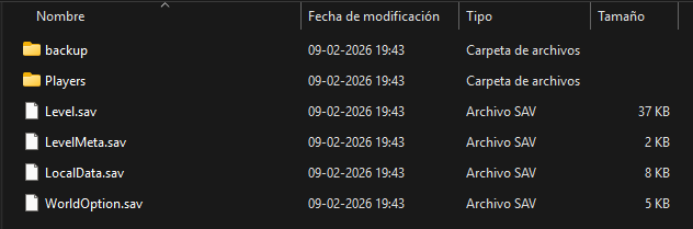 Dentro de la carpeta de Steam ID encontrarás diferentes mundos, lo ideal es que selección el más reciente. Luego ingresa a la carpeta de tu mundo más reciente y encontraras los siguientes archivos: